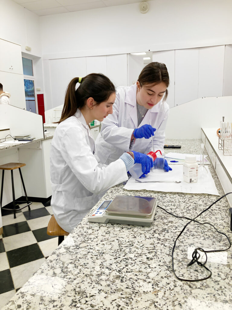 En la escuela disponemos de dos laboratorios que permiten al alumnado experimentar la ciencia de manera directa. Por un lado, el laboratorio de química, equipado con material específico y una campana de gases que permite trabajar con seguridad en experimentos químicos. Por otro lado, el laboratorio de física y biología, donde los alumnos pueden observar el mundo microscópico con microscopios y trabajar con diferentes materiales como minerales, rocas o preparaciones biológicas.