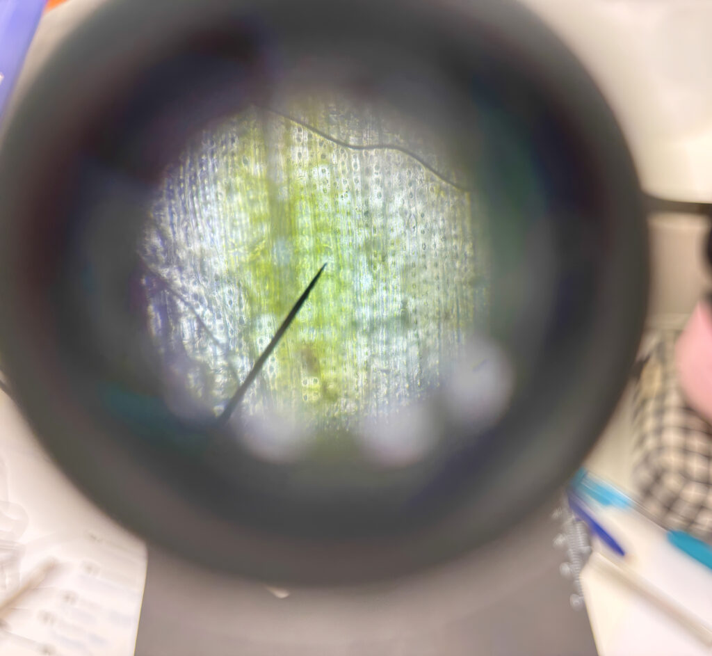 Finalmente, en 4.º de ESO, los alumnos tienen la oportunidad de consolidar el trabajo experimental con prácticas más específicas dentro del taller que se realiza los jueves por la tarde. En el taller de física investigan conceptos como la cinemática, mediante experimentos de movimiento y toma de datos; la ley de Hooke, al analizar la relación que se establece entre la fuerza y la deformación en muelles; y la tercera ley de Newton, a partir de situaciones experimentales. Paralelamente, en el taller de biología continúan explorando el mundo microscópico introducido en tercero. En concreto, preparan ellos mismos sus propias muestras para observar estructuras de la célula vegetal y estudiar la mitosis en células de la raíz de la cebolla. Además, se realiza una introducción a la bioquímica, donde llevan a cabo diferentes pruebas bioquímicas para reconocer biomoléculas.